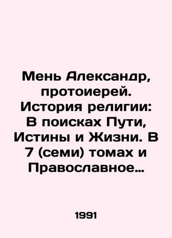 "Men Alexander, Archpriest. History of Religion: In Search of the Way, Truth, and Life. In 7 (seven) volumes and Orthodox Divine Service. Mystery, Word, and Image. -8 volumes. In Russian /Men Aleksandr, protoierey. Istoriya religii: V poiskakh Puti, Istiny i Zhizni. V 7 (semi) tomakh i Pravoslavnoe bogosluzhenie. Tainstvo, Slovo i obraz.-8 tomov. M. SlovoSlovo. 1991-1993. 280-620 and 191cc. Volume I-The Origins of Religion.; Volume II-Magism and UniGod: The Religious Way of Mankind to the Age of the Great Teachers.; Volume III-U The Gates of Silence: The Spiritual Life of China and India in the Mid-First Millennium BC; Volume IV-Dionysus, Logos, Destiny: Greek Religion and Philosophy from the Age of Colonization to Alexander.; Volume V-V-V of the Kingdom of God. Biblical Prophets from Amos to the Restoration. (VIII-IV centuries BC); Volume VI-On the threshold of the New Testament.; Volume VII-Son of Man. We have thousands of titles and often several copies of each title may be available. Please feel free to contact us for a detailed description of the copies available. SKUalb7c0a1756b04abc67."