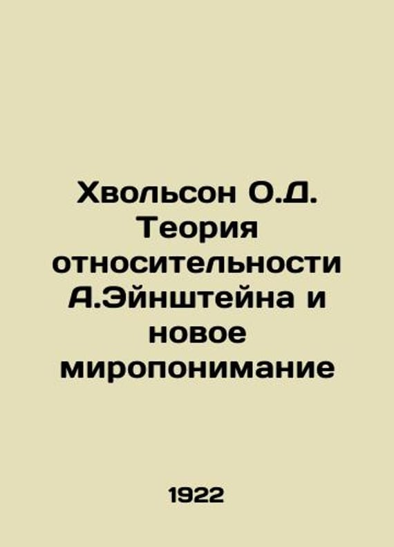 Short description: Hvolson O.D. A. Einstein's Theory of Relativity and the New World Understanding In Russian /Khvol'son O.D. Teoriya otnositel'nosti A.Eynshteyna i novoe miroponimanieIn Russian.Orestes Danilovich Khvolson (1852-1934) is a Russian and Soviet physicist and pedagogue, corresponding member of the St. Petersburg Academy of Sciences, honorary member of the Russian Academy of Sciences. We have thousands of titles and often several copies of each title may be available. Please feel free to contact us for a detailed description of the copies available. SKUalb7c2856d9735d5851