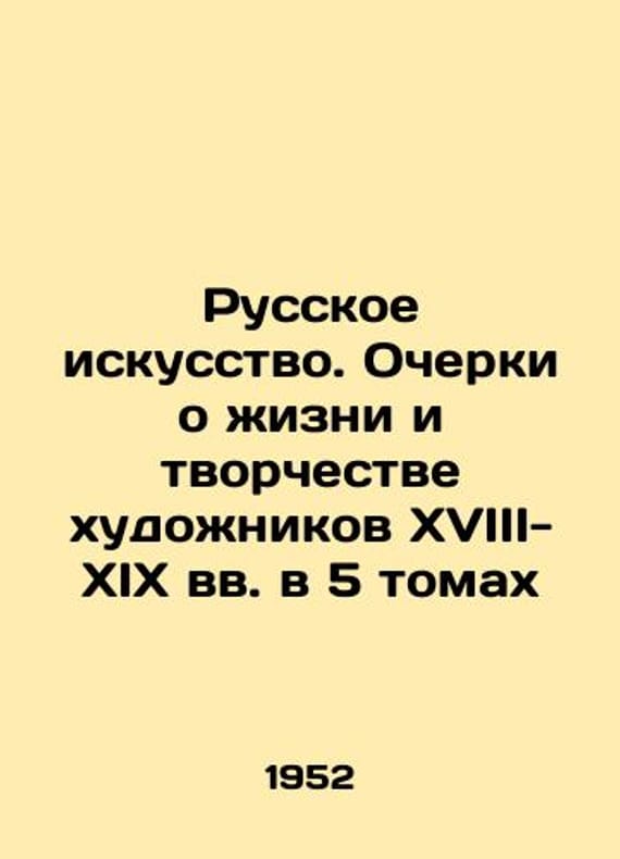 Russian Art. Essays on the Life and Creativity of Artists of the 18th-19th Centuries in 5 Volumes In Russian /Russkoe iskusstvo. Ocherki o zhizni i tvorchestve khudozhnikov XVIII-XIX vv. v 5 tomakh Complete set. Edited by A.I. Leonov. M. Art. 1952-1971. Essays included in 5 volumes are devoted to Russian painters, sculptures and graphics of the 18th-9th centuries. They describe the life and activities of the most famous artists, whose work determines the main stages of the development of Russian art. Content: Volume 1. Essays on the life and work of 18th century artists. Volume 2. First half of the 19th century (1954). Volume 3. Middle 19th century (1958). Volume 4-5.Second half of the 19th century. Volume 2 (1962, 1971). We have thousands of titles and often several copies of each title may be available. Please feel free to contact us for a detailed description of the copies available. SKUalb7c4ccc4a433fc8b5.