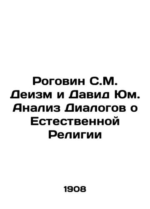 Rogovin S. M. Deism and David Hume: Analysis of Dialogues on Natural Religion In Russian /Rogovin S.M. Deizm i David Yum. Analiz Dialogov o Estestvennoy Religii Moscow Book Publishing House Zaratustra 1908. 88 p. We have thousands of titles and often several copies of each title may be available. Please feel free to contact us for a detailed description of the copies available. SKUalb7c5f2efeb1d52ce6.