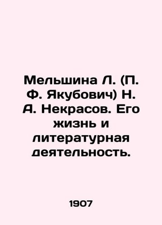 Short description: Melshina L. (P. F. Yakubovich) N. A. Nekrasov. His life and literary activity. In Russian /Mel'shina L. (P. F. Yakubovich) N. A. Nekrasov. Ego zhizn' i literaturnaya deyatel'nost'.In Russian.Type Yu. N. Ehrlich. 1907. 96s. We have thousands of titles and often several copies of each title may be available. Please feel free to contact us for a detailed description of the copies available. SKUalb7c81a1bf4ef57272