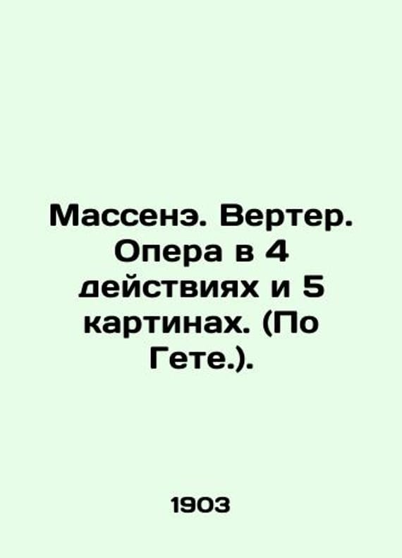 Massenet. Verter. Opera in 4 acts and 5 paintings. (According to Goethe.). In Russian /Massene. Verter. Opera v 4 deystviyakh i 5 kartinakh. (Po Gete.). Libretto by Edouard Bleu, Paul Milieu, Georges Hartmann. Performed by Nikolai Zvantsov. M. Music Trade by P. Yurgenson in Moscow. Circulation not specified. 1903. 32 p. We have thousands of titles and often several copies of each title may be available. Please feel free to contact us for a detailed description of the copies available. SKUalb7dcd2e46f4f458bf.