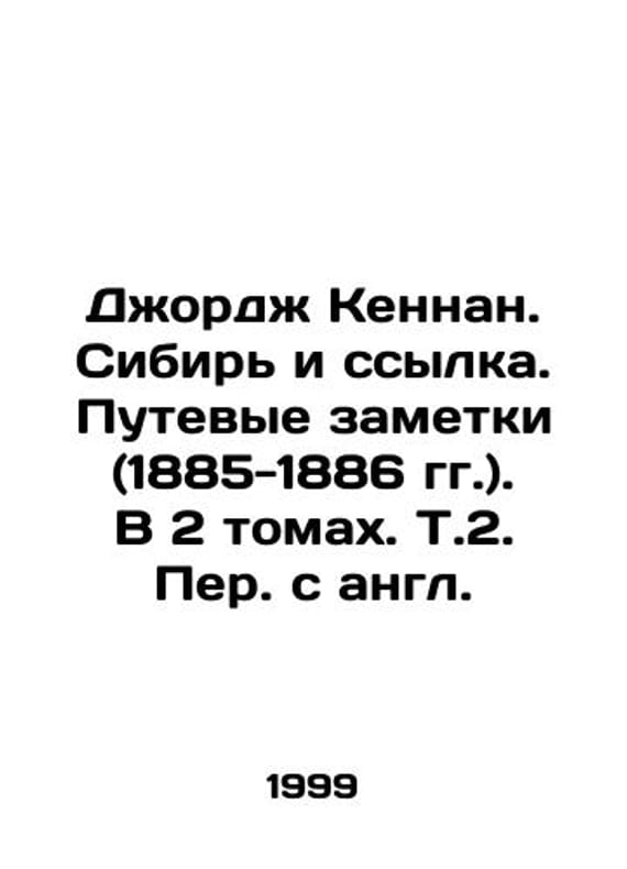George Kennan. Siberia and exile. Travel notes (1885-1886). In two volumes In Russian /Dzhordzh Kennan. Sibir i ssylka. Putevye zametki (1885-1886 gg.). V 2 tomakh. T.2. Per. s angl.Russian-Baltic Information Centre, BLITS, SPb, 1999.We have thousands of titles and often several copies of each title may be available. Please feel free to contact us for a detailed description of the copies available. SKUalb7dea843bebe25a9a.