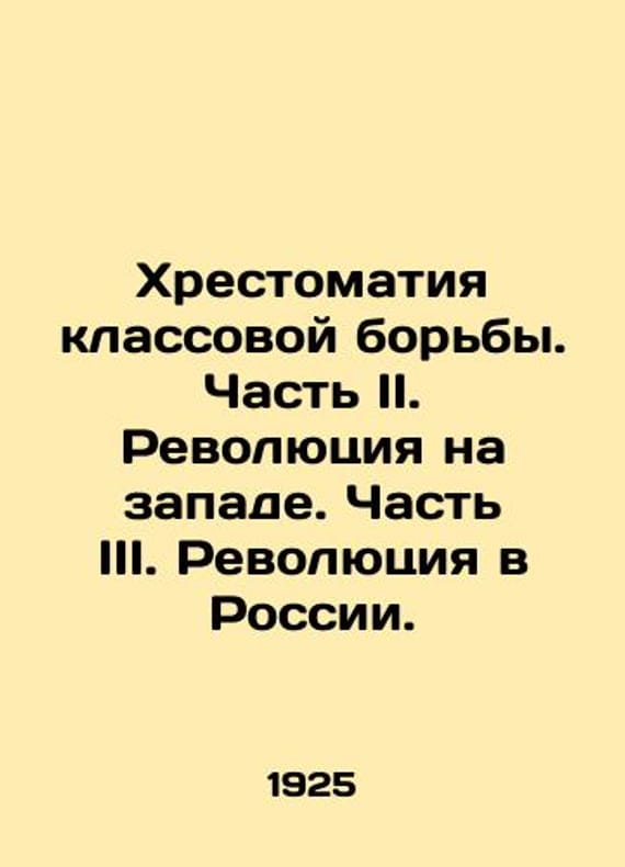 Short description: The History of Class Struggle. Part II. Revolution in the West. Part III. Revolution in Russia. In Russian /Khrestomatiya klassovoy bor'by. Chast' II. Revolyutsiya na zapade. Chast' III. Revolyutsiya v Rossii.In Russian.The aim of Part II of the History of Class Struggle is to provide material covering the revolutionary struggle in the West. The material is chosen in such a way as to reveal a pattern in the historical process and to make appropriate comparisons with modernity. The development of capitalism and, as a consequence, the struggle of the bourgeoisie for power. We have thousands of titles and often several copies of each title may be available. Please feel free to contact us for a detailed description of the copies available. SKUalb7e067b03544118bc