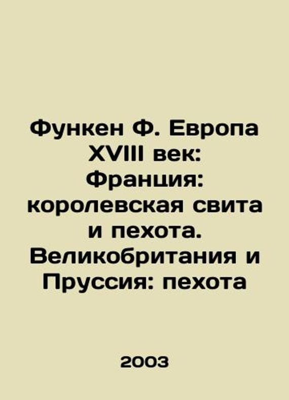 Short description: Funken F. Europe eighteenth century: France: Royal entourage and infantry. Great Britain and Prussia: infantry In Russian /Funken F. Evropa XVIII vek: Frantsiya: korolevskaya svita i pekhota. Velikobritaniya i Prussiya: pekhotaIn Russian.pen from the French encyclopedia of armaments and military suits (series) M AST 2003. We have thousands of titles and often several copies of each title may be available. Please feel free to contact us for a detailed description of the copies available. SKUalb7e13c336b8d94b1d