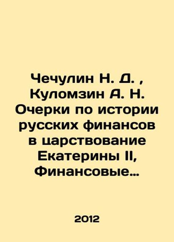 N. D. Chechulin A. N. Kulomzin Essays on the History of Russian Finance during the reign of Catherine II Financial Documents of the reign of Empress Catherine II In Russian (ask us if in doubt)/Chechulin N. D. Kulomzin A. N. Ocherki po istorii russkikh finansov v tsarstvovanie Ekateriny II Finansovye dokumenty tsarstvovaniya imperatritsy Ekateriny II. Tyre Room 5 Moscow Publishing House V. Sekachev 2012 924s. SKUalb7e2aca9fb5a83f1c.
