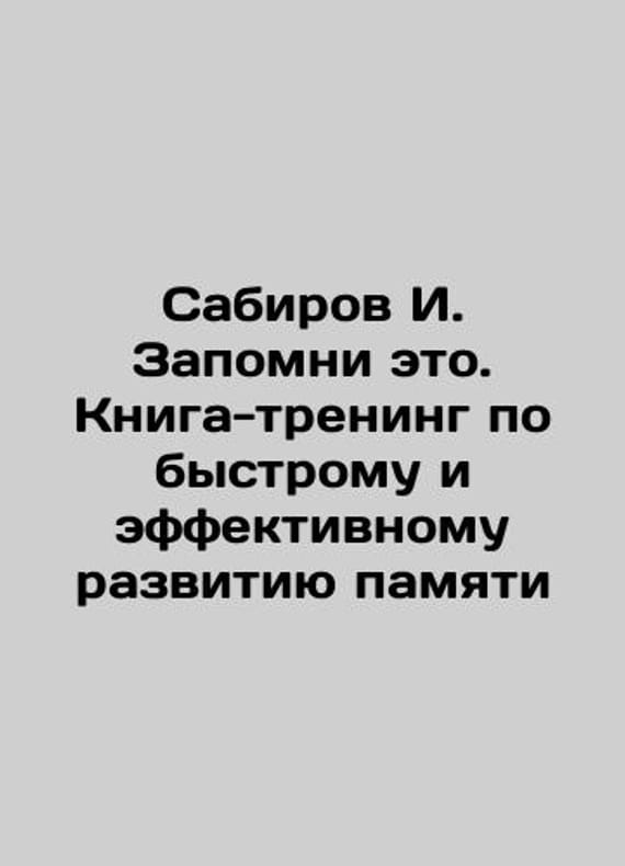 Sabirov I. Remember this. Training book on the rapid and effective development of memory In Russian /Sabirov I. Zapomni eto. Kniga-trening po bystromu i effektivnomu razvitiyu pamyati M. Mann, Ivanov and Ferber 2022 208s.We have thousands of titles and often several copies of each title may be available. Please feel free to contact us for a detailed description of the copies available. SKUalb7e3fb6ca933e23ce.