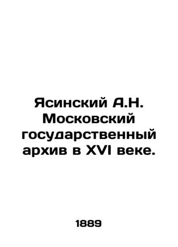 A.N. Yasinsky Moscow State Archives in the 16th Century. In Russian (ask us if in doubt)/Yasinskiy A.N. Moskovskiy gosudarstvennyy arkhiv v XVI veke.Kyiv: Typography of the Imperial University of St. Volodymyr 1889. 2 14s. We have thousands of titles and often several copies of each title may be available. Please feel free to contact us for a detailed description of the copies available. SKUalb7e790d1f14ca58b6