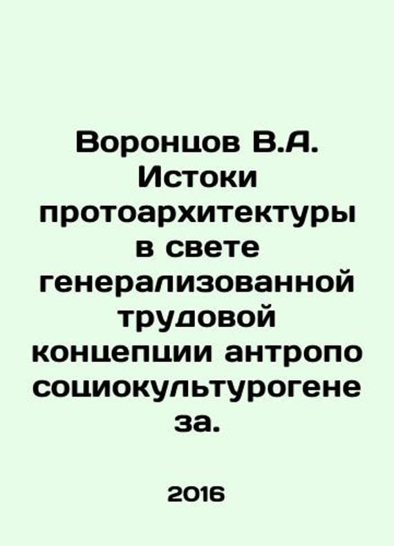 Vorontsov V.A. The origins of proto-architecture in the light of the generalized working concept of anthropostiocultural genesis. In Russian /Vorontsov V.A. Istoki protoarkhitektury v svete generalizovannoy trudovoy kontseptsii antroposotsiokulturogeneza. Scientific Editor: Corresponding Member of the Academy of Sciences of the Republic of Tatarstan F.Sh.Khuzin. Kazan. Center for Innovative Technologies. 2016. We have thousands of titles and often several copies of each title may be available. Please feel free to contact us for a detailed description of the copies available. SKUalb7eaedc90a93466d8.