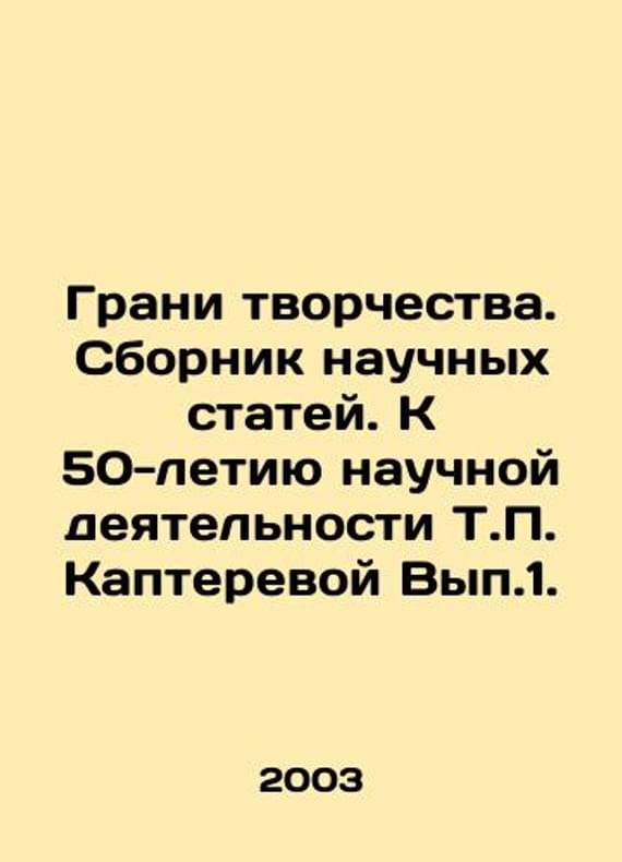Short description: The Frontiers of Creativity. Collection of Scientific Articles. To the 50th Anniversary of T.P. Kaptereva's Scientific Activit In Russian /Grani tvorchestva. Sbornik nauchnykh statey. K 50-letiyu nauchnoy deyatel'nosti T.P. Kapterevoy Vyp.1.In Russian.Moscow, Progress-Tradition. 2003. 232 p. We have thousands of titles and often several copies of each title may be available. Please feel free to contact us for a detailed description of the copies available. SKUalb7ed8047f7c263cc8