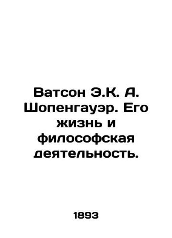 Watson E.K. A. Schopenhauer: His Life and Philosophy. In Russian /Vatson E.K. A. Shopengauer. Ego zhizn i filosofskaya deyatelnost. A series: The lives of remarkable people. S. Types and phototypes of V. I. Stein. 1893. We have thousands of titles and often several copies of each title may be available. Please feel free to contact us for a detailed description of the copies available. SKUalb7f73614e61c96471.