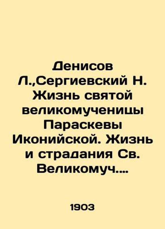 Denisov L. Sergievsky N. The Life of the Holy Great Martyr of Paraskeva of the Iconium. The Life and Suffering of St. Barbara. The Life and Suffering of St. Catherine the Great Martyr. The Life and Suffering of St. Eudocia. Venerable Sava Storozhevsky and his holy abode. In Russian (ask us if in doubt)/Denisov L. Sergievskiy N. Zhizn svyatoy velikomuchenitsy Paraskevy Ikoniyskoy. Zhizn i stradaniya Sv. Velikomuch. Varvary. Zhizn i stradanie sv. velikomuchenitsy Ekateriny. Zhizn i stradanie svyatoy prepodobnomuchenitsy Evdokii. Prepodobnyy Savva Storozhevskiy i ego svyataya obitel. (KonvoM. Edition by E.I. Konovalova. Type. T-v I.D. Sytin. 1898 1900 1901 1902 1903.64 and 64 and 80 and 80 and 80 pages We have thousands of titles and often several copies of each title may be available. Please feel free to contact us for a detailed description of the copies available. SKUalb7f7e7779d074842a