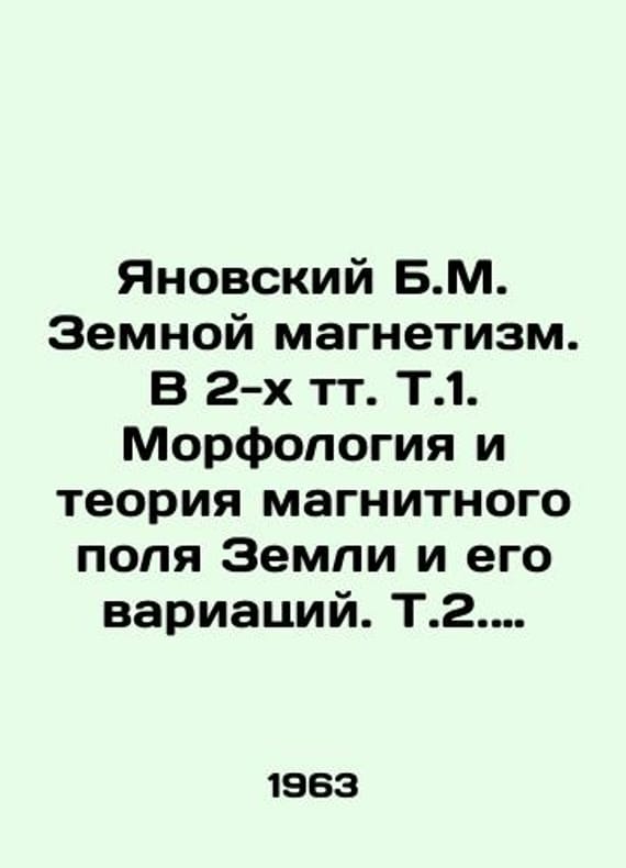 Short description: Yanovsky B.M. Earth magnetism. In 2 vol. Vol. 1. Morphology and theory of the Earth's magnetic field and its variations. Vol. 2. Theoretical foundations of the magnetometric method of studying the earth's crust and geomagnetic measurements. In Russian /Yanovskiy B.M. Zemnoy magnetizm. V 2-kh tt. T.1. Morfologiya i teoriya magnitnogo polya Zemli i ego variatsiy. T.2. Teoreticheskie osnovy magnitometricheskogo metoda issledovaniya zemnoy kory i geomagnitnye izmereniya.In Russian.Leningrad. Leningrad University Publishing House. 1963-64. 446 + 462 p. We have thousands of titles and often several copies of each title may be available. Please feel free to contact us for a detailed description of the copies available. SKUalb7fddb0a5a9461a69