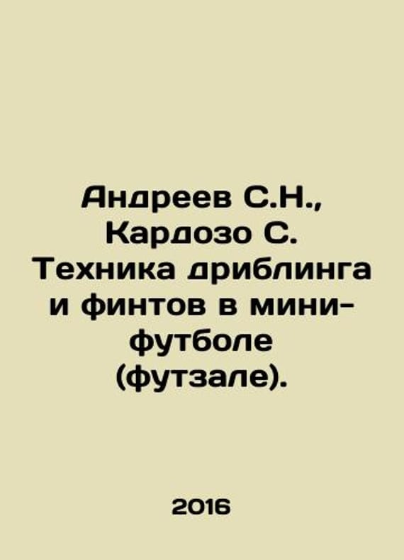 Short description: Andreev S.N., Cardoso S. Dribbling and Fint Technique in Futsal. In Russian /Andreev S.N., Kardozo S. Tekhnika driblinga i fintov v mini-futbole (futzale).In Russian.Textbook. M. Sport 2016. 240 p. We have thousands of titles and often several copies of each title may be available. Please feel free to contact us for a detailed description of the copies available. SKUalb7ffd8cc8be979fa2