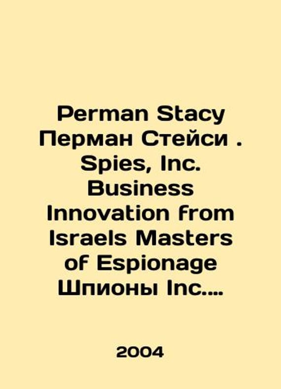 Short description: Perman Stacy Perman Stacy. Spies, Inc. Business Innovation from Israel Masters of Espionage Spies Inc. Business Innovation from Israeli Spies Masters. In Russian /PermanStacy Perman Steysi. Spies,Inc. Business Innovation from Israels Masters ofEspionage Shpiony Inc. Biznes-innovatsii ot izrail'skikh masterov shpionazha.In Russian.US FT Press: 2004. 258c. We have thousands of titles and often several copies of each title may be available. Please feel free to contact us for a detailed description of the copies available. SKUalb8043b3717b608d25