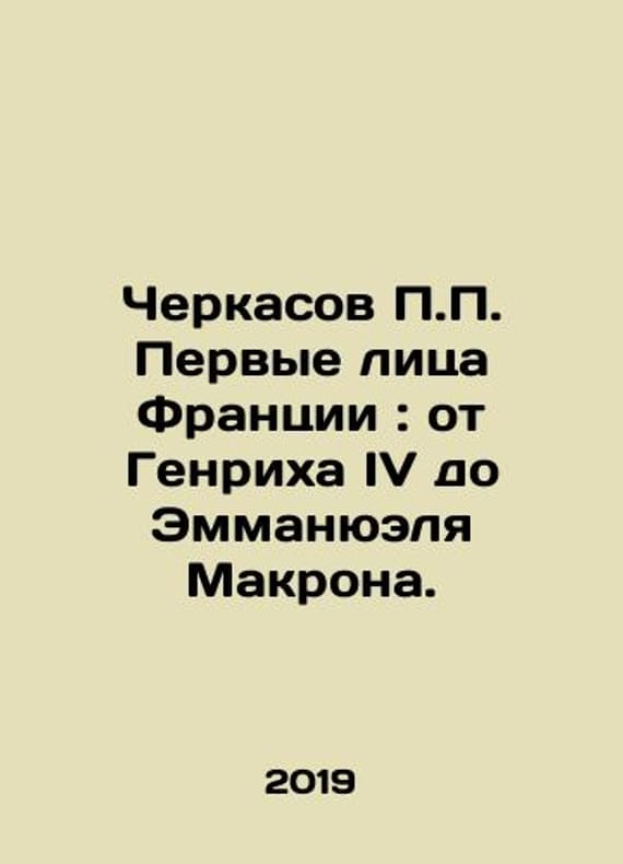 Cherkasov First Person of France: from Henry IV to Emmanuel Macron. In Russian /Cherkasov Pervye litsa Frantsii: ot Genrikha IV do Emmanyuelya Makrona.Moscow. Partnership of Scientific Publications of KMK. 2019.We have thousands of titles and often several copies of each title may be available. Please feel free to contact us for a detailed description of the copies available. SKUalb80cbd8459721678b.