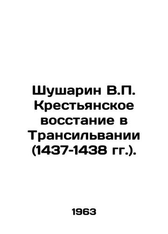 Shusharin V. Peasant uprising in Transylvania (1437-1438). In Russian /Shusharin V. Krestyanskoe vosstanie v Transilvanii (1437 1438 gg.). M. AS USSR. 1963. We have thousands of titles and often several copies of each title may be available. Please feel free to contact us for a detailed description of the copies available. SKUalb80d807e61adbaaf5.