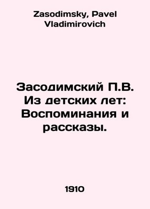 P.V. Zasodim from childhood: Memories and Stories. In Russian /Zasodimskiy P.V. Iz detskikh let: Vospominaniya i rasskazy. Moscow T-vo I. D. Sytina, 1910, 112 p. We have thousands of titles and often several copies of each title may be available. Please feel free to contact us for a detailed description of the copies available. SKUalb8116407530f8ef38.