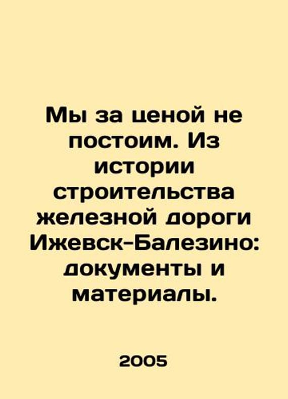 Short description: We will not stand for the price. From the history of the construction of the Izhevsk-Balezino railway: documents and materials. In Russian /My za tsenoy ne postoim. Iz istorii stroitel'stva zheleznoy dorogi Izhevsk-Balezino: dokumenty i materialy.In Russian.Izhevsk Committee for Archives Affairs under the Government of the Udmurt Republic 2005 304 pp. We have thousands of titles and often several copies of each title may be available. Please feel free to contact us for a detailed description of the copies available. SKUalb817814be9c6c36b9