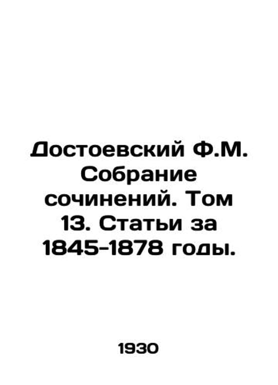 Dostoevsky F.M. Collection of Works. Volume 13. Articles for 1845-1878. In Russian /Dostoevskiy F.M. Sobranie sochineniy. Tom 13.Stati za 1845-1878 gody. M-L. State Publishing House. 1930. We have thousands of titles and often several copies of each title may be available. Please feel free to contact us for a detailed description of the copies available. SKUalb818a11d26747c424.