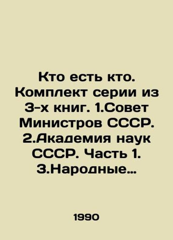 Whos Who. A set of 3 books. 1. Council of Ministers of the USSR. 2. Academy of Sciences of the USSR. Part 1. 3. Peoples Deputies of the USSR. In Russian /Kto est kto. Komplekt serii iz 3-kh knig. 1.Sovet Ministrov SSSR. 2.Akademiya nauk SSSR. Chast 1. 3.Narodnye deputaty SSSR. M. Vneshtorgizdat 1990. We have thousands of titles and often several copies of each title may be available. Please feel free to contact us for a detailed description of the copies available. SKUalb8192013bc6cd2b4c.