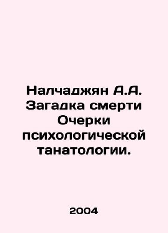 Nalchadjian A.A. Death Mystery Essays on Psychological Tanatology. In Russian /Nalchadzhyan A.A. Zagadka smerti Ocherki psikhologicheskoy tanatologii. St. Petersburg, 2004. On the basis of numerous facts, questions of social, psychological, and biological human death, euthanasia, and peoples near-death experiences are considered in a popular but scientifically credible manner. How does the topic of death reflect and symbolize in dreams? What do parapsychological studies provide for the knowledge of death and dying?. We have thousands of titles and often several copies of each title may be available. Please feel free to contact us for a detailed description of the copies available. SKUalb81aac0f3df62bff9.