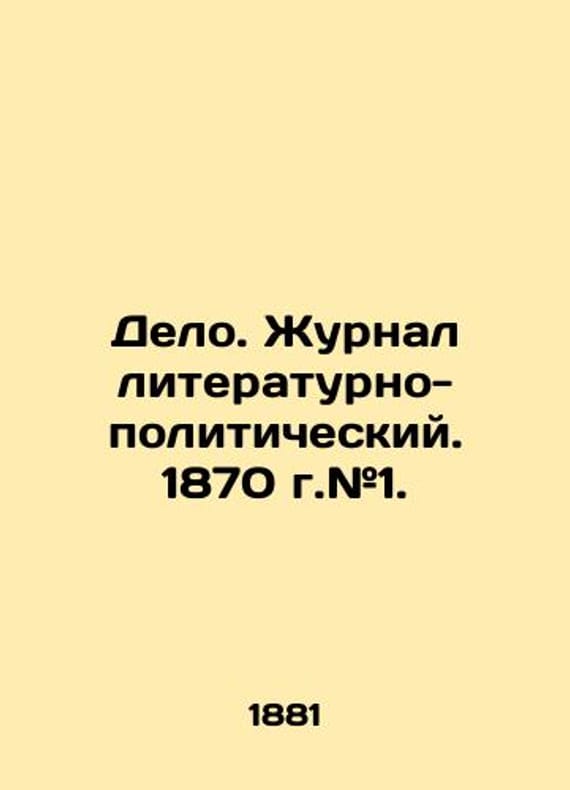 Short description: Delo. Literary and Political Journal. 1870. # 1. In Russian /Delo. Zhurnal literaturno- politicheskiy. 1870 g.#1.In Russian.St. Petersburg, 1881. Polonsky: Cool slides. Dode: Numa Rumestan. V.Ivanov: Economic helplessness and folk food. Boborykin: Learning. Omulevsky: Resurrection. Mopasan: Pyshka. Talfranc: Notes and Memories. Senkevich: Old servant. Stanyukovich: Omuth. Page from Russian sociology. Lensky: Family sections We have thousands of titles and often several copies of each title may be available. Please feel free to contact us for a detailed description of the copies available. SKUalb8226de60b7234084