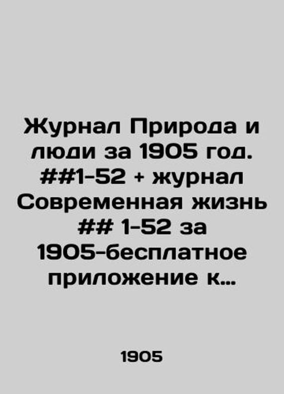 Journal of Nature and People 1905. # # 1-52 and journal of Modern Life # # 1-52 for 1905-free supplement to the journal Nature and People In Russian /Zhurnal Priroda i lyudi za 1905 god. ##1-52 and zhurnal Sovremennaya zhizn ## 1-52 za 1905-besplatnoe prilozhenie k zhurnalu Priroda i lyudi Petrograd Soikin Printing House, 1905, 838 p. We have thousands of titles and often several copies of each title may be available. Please feel free to contact us for a detailed description of the copies available. SKUalb8247554b67492664.