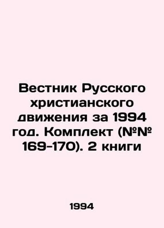 Short description: Bulletin of the Russian Christian Movement for 1994. Kit (# # 169-170). 2 books In Russian /Vestnik Russkogo khristianskogo dvizheniya za 1994 god. Komplekt (## 169-170). 2 knigiIn Russian.Paris-New York-Moscow Publishing House RSCA 1994, 296 p. We have thousands of titles and often several copies of each title may be available. Please feel free to contact us for a detailed description of the copies available. SKUalb82b6de6d00839a13