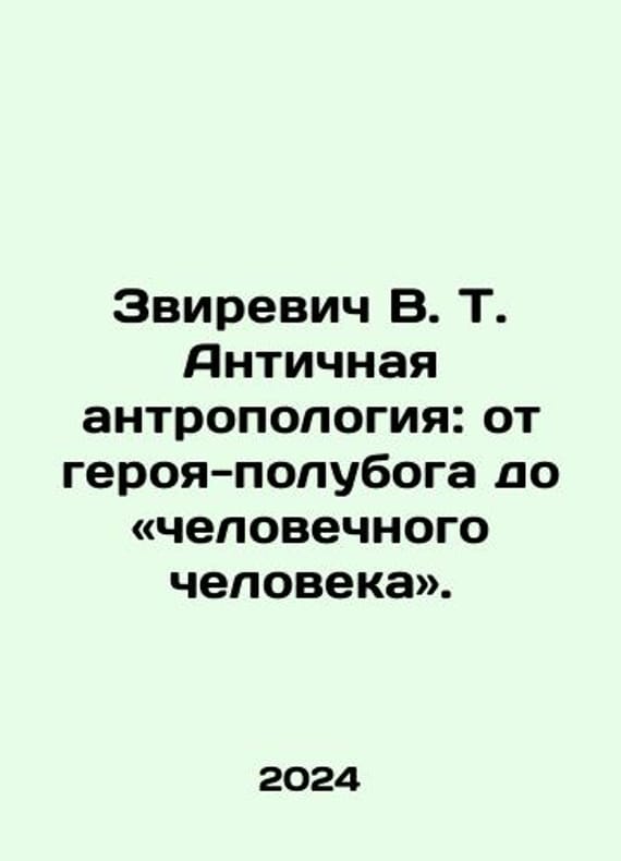 Zvirevich V.T. Ancient Anthropology: from demigod hero to human being. In Russian /Zvirevich V.T. Antichnaya antropologiya: ot geroya-poluboga do chelovechnogo cheloveka. In Russian. Series: Ages. Antiquity. Research Moscow Alma Mater 2024. 263 p. We have thousands of titles and often several copies of each title may be available. Please feel free to contact us for a detailed description of the copies available. SKUalb8e62e2b47634283c