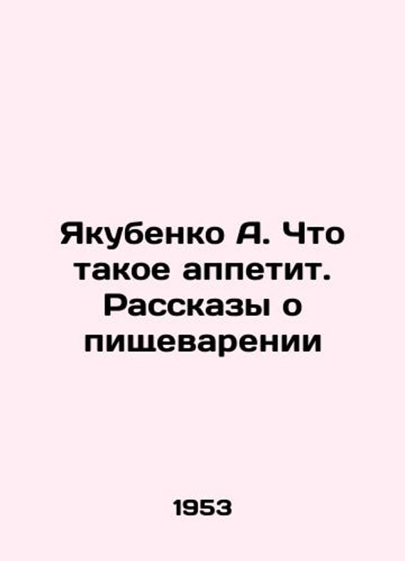 Yakubenko A. What is appetite. Stories about digestion In Russian /Yakubenko A. Chto takoe appetit. Rasskazy o pishchevareniiIn aid of a schoolboy called Detgiz 1953.We have thousands of titles and often several copies of each title may be available. Please feel free to contact us for a detailed description of the copies available. SKUalb82e89976bfe672fd.