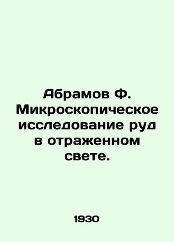 Abramov F. Microscopic study of ores in reflected light. In Russian /Abramov F. Mikroskopicheskoe issledovanie rud v otrazhennom svete. Edited by N.M. Fedorovsky, Scientific Chemical and Technical Publishing House of the All-Chemical Industry of the USSR. 1930. We have thousands of titles and often several copies of each title may be available. Please feel free to contact us for a detailed description of the copies available. SKUalb82fc0a36800c92eb.