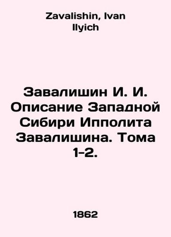 I. I. Zavalishins Description of Western Siberia by Hippolyte Zavalishin. Volumes 1-2. In Russian /Zavalishin I. I. Opisanie Zapadnoy Sibiri Ippolita Zavalishina. Toma 1-2. Useful Books Distribution Society: Grachevs Printing House and Compilation 1862-2, 419c. We have thousands of titles and often several copies of each title may be available. Please feel free to contact us for a detailed description of the copies available. SKUalb830200dabe4abede.