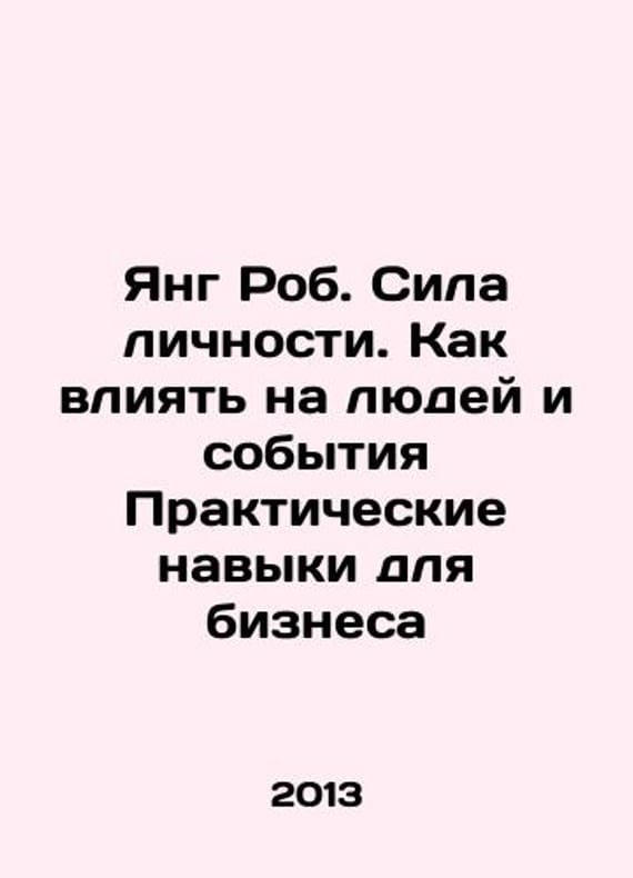 Short description: Young Rob. The Power of Personality: How to Influence People and Events Practical Skills for Business In Russian /Yang Rob. Sila lichnosti. Kak vliyat' na lyudey i sobytiya Prakticheskie navyki dlya biznesaIn Russian.Moscow Pretext 2013. 313p. We have thousands of titles and often several copies of each title may be available. Please feel free to contact us for a detailed description of the copies available. SKUalb8304ad715e4808c3