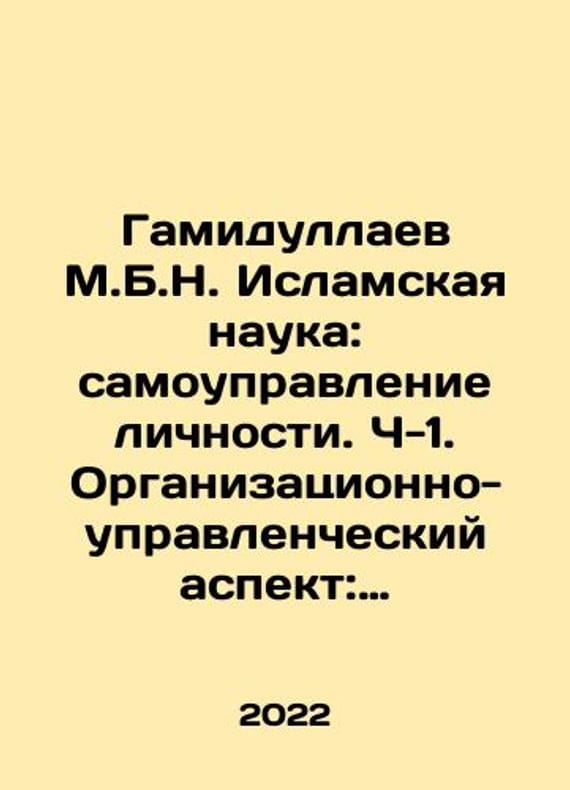 Short description: Hamidullayev M.B.N. Islamic Science: Self-Management of Personality. Part-1. Organizational and Management Aspect: Monograph (Time, Labor, Knowledge) In Russian /Gamidullaev M.B.N. Islamskaya nauka: samoupravlenie lichnosti. Ch-1. Organizatsionno-upravlencheskiy aspekt: monografiya (vremya, trud, znaniya)In Russian.Monograph. Moscow: Rodina, 2022. 458 p. We have thousands of titles and often several copies of each title may be available. Please feel free to contact us for a detailed description of the copies available. SKUalb831d53efca3b1b4c