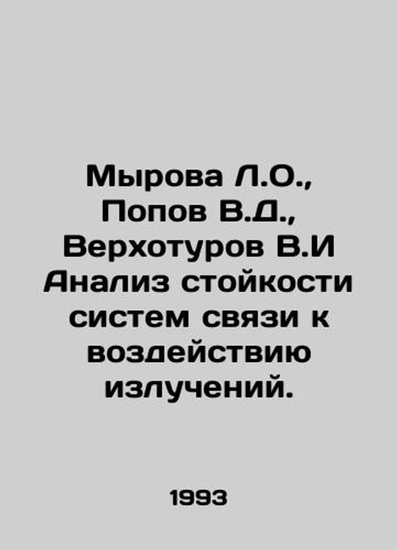 Myrova L.O., Popov V.D., Verkhoturov V.I Analysis of the resistance of communication systems to the effects of radiation. In Russian /Myrova L.O., Popov V.D., Verkhoturov V.I Analiz stoykosti sistem svyazi k vozdeystviyu izlucheniy. Scientific Edition. Edited by Kukka K.I. M. Radio and Communications. 1993. We have thousands of titles and often several copies of each title may be available. Please feel free to contact us for a detailed description of the copies available. SKUalb835349f74378ef61.