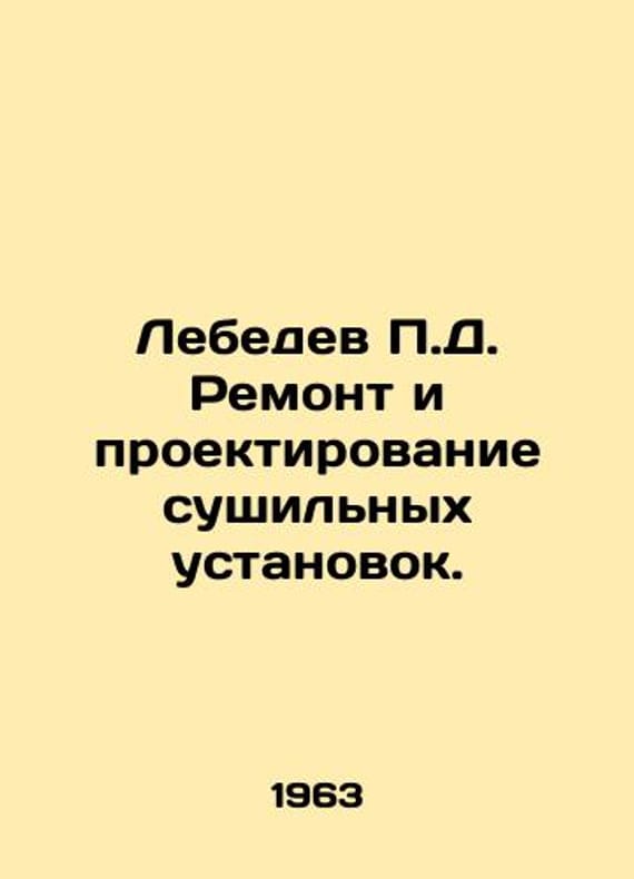 Short description: Lebedev P.D. Repair and design of drying plants. In Russian /Lebedev P.D. Remont i proektirovanie sushil'nykh ustanovok.In Russian.M.-L. Gosenergoizdat 1963. 320 p. We have thousands of titles and often several copies of each title may be available. Please feel free to contact us for a detailed description of the copies available. SKUalb83e32613d5be0a9b