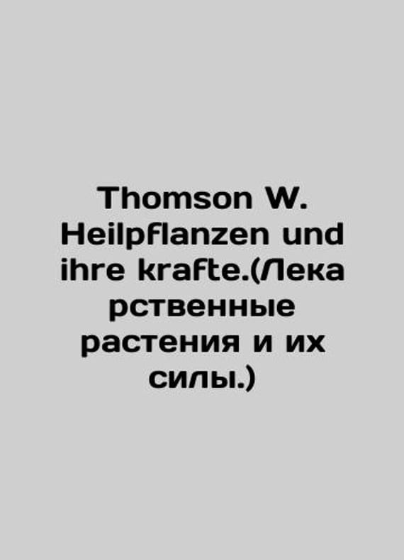 Thomson W. Heilpflanzen und ihre krafte. (Medicinal plants and their powers.) In Russian /Thomson W. Heilpflanzen und ihre krafte.(Lekarstvennye rasteniya i ikh sily.)In German Bern. Publishing House Kolibri. 208p.We have thousands of titles and often several copies of each title may be available. Please feel free to contact us for a detailed description of the copies available. SKUalb840352afa303787a.