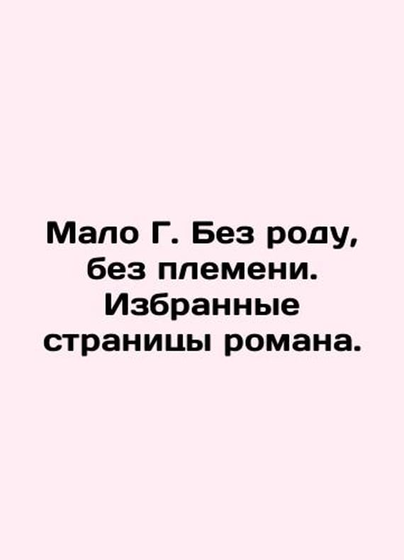 Not a lot of G. Without birth, without tribe. Selected pages of the novel. In Russian /Malo G. Bez rodu, bez plemeni. Izbrannye stranitsy romana. Not a lot of G. Without birth, without tribe. Selected pages of the novel. We have thousands of titles and often several copies of each title may be available. Please feel free to contact us for a detailed description of the copies available. SKUalb842b2cbc1c914a75.