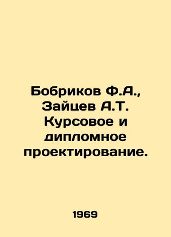Bobrikov F.A., Zaitsev A.T. Course and diploma design. In Russian /Bobrikov F.A., Zaytsev A.T. Kursovoe i diplomnoe proektirovanie. M Kolos 1969. We have thousands of titles and often several copies of each title may be available. Please feel free to contact us for a detailed description of the copies available. SKUalb847794d64f123a8d.