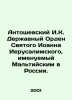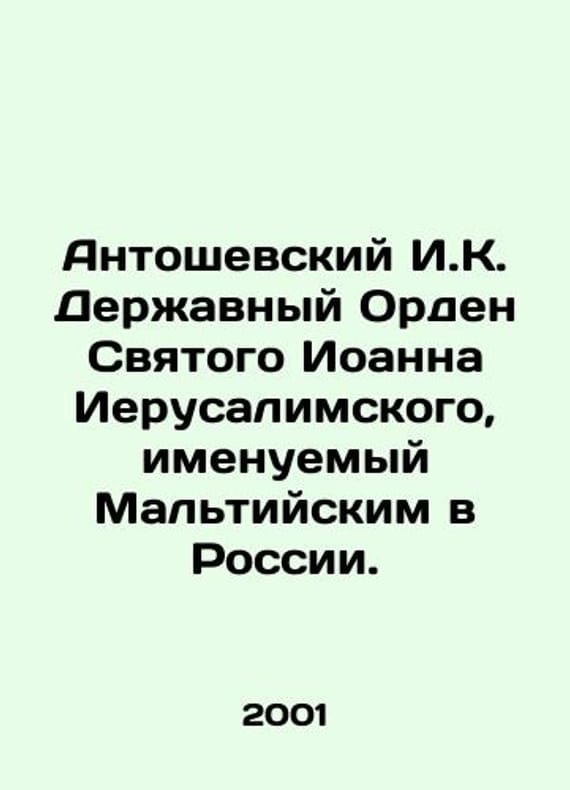 Short description: Antoshevsky I.K. Order of St. John of Jerusalem, called the Order of Malta in Russia. In Russian /Antoshevskiy I.K. Derzhavnyy Orden Svyatogo Ioanna Ierusalimskogo, imenuemyy Mal'tiyskim v Rossii.In Russian.The Order of the Martinists. M. GPIB. 2001. 115 p. We have thousands of titles and often several copies of each title may be available. Please feel free to contact us for a detailed description of the copies available. SKUalb848d2c02e7b3c85e