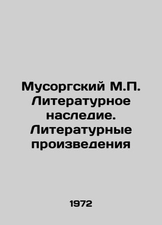 Short description: Musorgsky M.P. Literary Heritage. Literary Works In Russian /Musorgskiy M.P. Literaturnoe nasledie. Literaturnye proizvedeniyaIn Russian.M Music 1972 edition is intended to satisfy the widest range of readers: those who study Mussorgsky's work, his aesthetic views, and those who are interested in the composer's biography We have thousands of titles and often several copies of each title may be available. Please feel free to contact us for a detailed description of the copies available. SKUalb84c50e59ab2f02b2