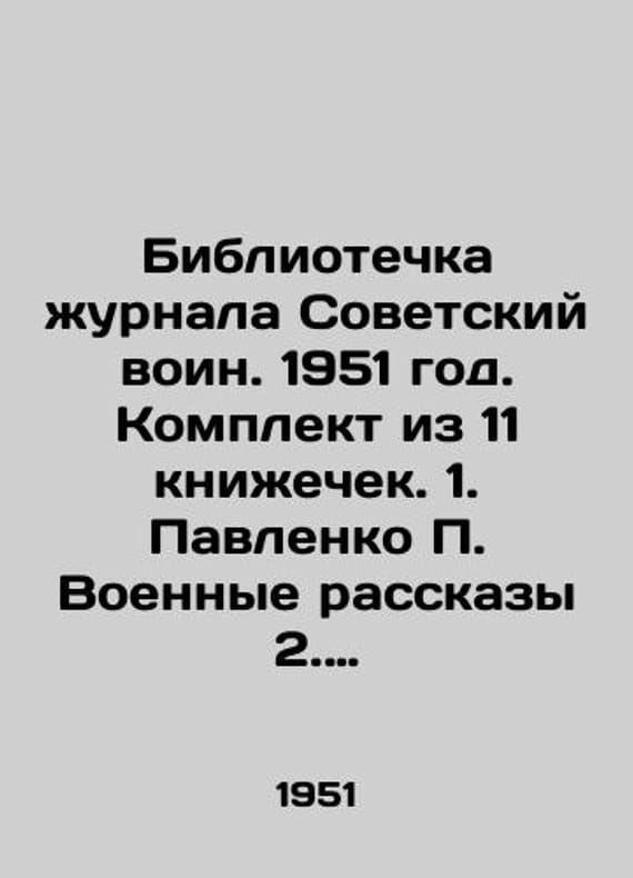 Short description: Library of the magazine Soviet warrior. 1951. A set of 11 books. 1. Pavlenko P. Military stories 2. Shebunin P. Portrait of a hero 3. Stadnyuk I. It won't be forgotten 4. Dobrynin Stories about Suvorovtsy. 5. Garin. Master of steel weapons 6. Kaminsky the guy from Chicago 7. Shahin V untouchable In Russian /Bibliotechka zhurnala Sovetskiy voin. 1951 god. Komplekt iz 11 knizhechek. 1. Pavlenko P. Voennye rasskazy 2. Shebunin P. Portret geroya 3. Stadnyuk I. Eto ne zabudetsya 4. Dobrynin Rasskazy o suvorovtsakh. 5. Garin. Master stal'nogo oruzhiya 6. Kaminskiy paren' iz Chikago 7. Shakhin V neprikosnovennykhIn Russian.Library of the magazine Soviet warrior. M Voenizdat 1951. 1. Pavlenko P. Military stories 2. Shebunin P. Portrait of a hero 3. Stadnyuk I. It won't be forgotten 4. Dobrynin Stories about Suvorovtsy. 5. Garin. Master of steel weapons 6. Kaminsky boy from Chicago 7. Shahin in in the inviolable mountains 8. Pozdneev My faithful comrade 9. Aramilev Hunting stories 10. Eliseev Eleven 11. Moskvin Nick. Common cause We have thousands of titles and often several copies of each title may be available. Please feel free to contact us for a detailed description of the copies available. SKUalb84e1f216e74a822f