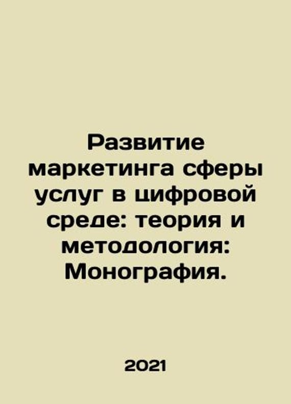 Short description: Development of Digital Services Marketing: Theory and Methodology: Monograph. In Russian /Razvitie marketinga sfery uslug v tsifrovoy srede: teoriya i metodologiya: Monografiya.In Russian.Prometheus Moscow 2021. 526 p. We have thousands of titles and often several copies of each title may be available. Please feel free to contact us for a detailed description of the copies available. SKUalb84f347672e26b210