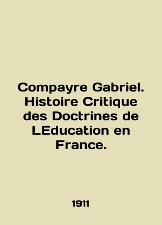 Compayre Gabriel. Histoire Critique des Doctrines de Education en France. In English /Compayre Gabriel. Histoire Critique des Doctrines de LEducation en France. A Critical History of the Doctrine of Education in France. Volume Two. Paris. Hachette. 1911. We have thousands of titles and often several copies of each title may be available. Please feel free to contact us for a detailed description of the copies available. SKUalb84f764e37c46c299.