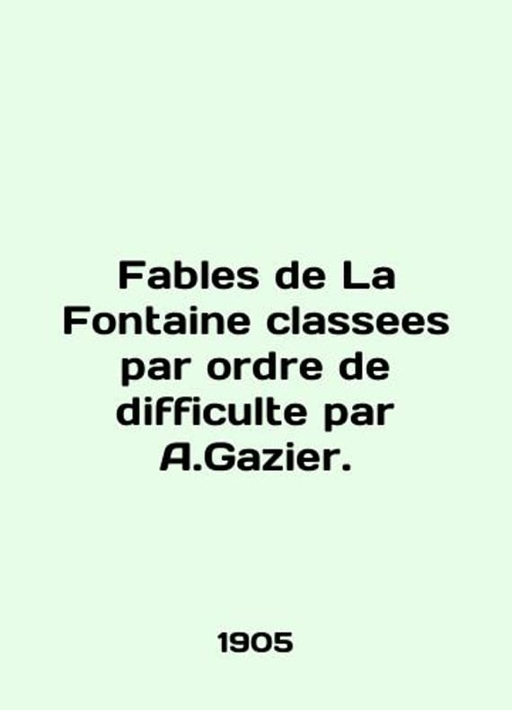 Fables de La Fontaine classsees par ordre de complicte par A.Gazier. In English /Fables de La Fontaine classees par ordre de difficulte par A.Gazier. Edition illustree de 180 gravures, dun fac-simile de lecriture de La Fontaine et dune carte. Paris Libraire Armand Colin 1905. We have thousands of titles and often several copies of each title may be available. Please feel free to contact us for a detailed description of the copies available. SKUalb854aa99a4c4668e3.