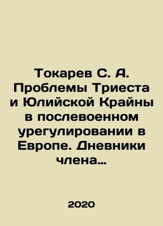 Tokarev S. A. Problems of Trieste and Yulia Krajina in the postwar settlement in Europe. Diaries of a member of the quadripartite Commission of Experts for the delineation of the Italian-Yugoslav border. In Russian /Tokarev S. A. Problemy Triesta i Yuliyskoy Krayny v poslevoennom uregulirovanii v Evrope. Dnevniki chlena chetyrekhstoronney Komissii ekspertov po provedeniyu italo-yugoslavskoy granitsy. In Russian. M. Indrik 2020. We have thousands of titles and often several copies of each title may be available. Please feel free to contact us for a detailed description of the copies available. SKUalb855bf1d96e4b50bf
