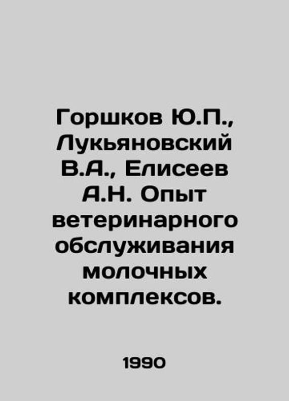 Yu. Gorshkov, V.A. Lukyanovsky, A.N. Eliseev Experience in veterinary care of dairy complexes. In Russian /Gorshkov Yu., Lukyanovskiy V.A., Eliseev A.N. Opyt veterinarnogo obsluzhivaniya molochnykh kompleksov. M Rosagropromyzdat 1990. We have thousands of titles and often several copies of each title may be available. Please feel free to contact us for a detailed description of the copies available. SKUalb856a9ab9765ca072.