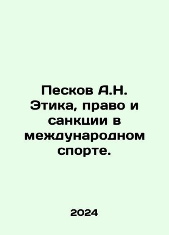 Peskov A.N. Ethics, Law and Sanctions in International Sports. In Russian /Peskov A.N. Etika, pravo i sanktsii v mezhdunarodnom sporte. In Russian. M Prospekt. 2024 88 pp. We have thousands of titles and often several copies of each title may be available. Please feel free to contact us for a detailed description of the copies available. SKUalb85f634c96d322d55