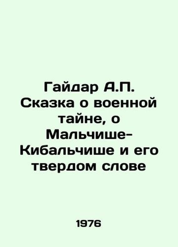 Gaidar A. The Tale of Military Secrets, of the Kibalchish Boy and His Firm Word In Russian /Gaydar A. Skazka o voennoy tayne, o Malchishe-Kibalchishe i ego tverdom slove Designer-artist L.Mayorova M. Malysh 1976.We have thousands of titles and often several copies of each title may be available. Please feel free to contact us for a detailed description of the copies available. SKUalb862bb1c6594498b7.